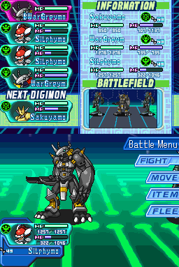 -> Na batalha o combate funciona por turnos, e tal como em Pokémon por norma é o Digimon mais rápido que ataca primeiro, mas a diferença é que muitas vezes um Digimon pode fazer mais que um ataque de seguida.